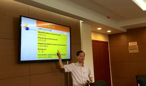 2016年6月22日下午,我院对教学督导专家组全体成员进行了业务培训。物联网工程学院黄文明博士进行了主题为《教学过程审核》的专题讲座。黄博士由“麻婆豆腐制作流程”抛出三个问题引发大家思考:麻婆豆腐的制作流程是不是一个过程?制作麻婆豆腐有哪些控制要点?制作麻婆豆腐与教学过程审核有什么关系?在此基础上黄博士简要介绍了质量管理体系的八大原则,进而结合具体案例对过程与过程方法、过程审核技术、教学过程审核等问题进行了深入浅出的讲解。黄博士的精彩讲座深深吸引了在场的督导专家,大家对IATF(国际汽车工作组)推荐的过程分析“乌龟图”及其在教学过程审核中的应用产生了浓厚的兴趣,并就如何进一步深度推进学校教学督导工作,尤其是构建富有前瞻性和可操作性的全员参与的专业质量保障体系提出了自己的想法。最后,教学督导室殷娴副主任进行了总结,希望大家在暑假中进一步学习教学督导理论,提升业务水平,为我校教学质量监控体系的不断自我改进与完善做出努力。![]() 讲座现场 |